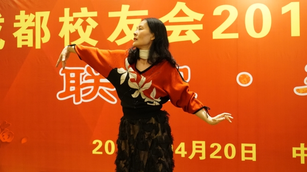 数学77级赵刊、中文80级胡世娟校友歌伴舞《天边》,仿佛让校友们重新回到青春岁月;