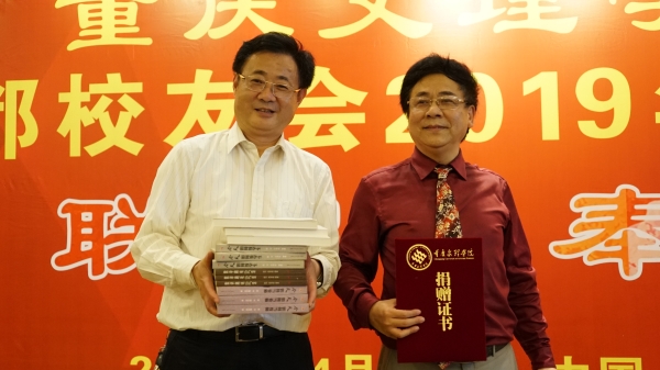 赵刊、胡世娟校友向母校捐赠个人专著表达对母校的眷恋和感恩之情。