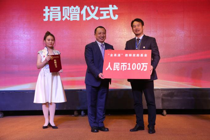 大会举行了捐赠仪式,黄伟九代表学校教育发展基金会接受艾中华校友再次向“金果源教师奖励基金”捐资100万元,姚平、钟晓斌校友再次向“成都校友会奖学金”捐资10万元。
