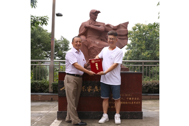 上午10点,“音乐学院 89 级校友毕业 30 周年--人民音乐家聂耳雕塑捐赠揭幕仪式”在星湖校区望湖楼前举行,仪式由89级校友杜建主持。黄伟九、杨桦、89级校友周云峰共同为聂耳雕塑揭幕。原89级校友、现音乐学院院长李劲松代表“音乐系 89 级毕业30 年纪念活动组委会”对本次活动主题、活动内容、雕像定制、校内选址和安装做了说明,并简要回顾了人民音乐家聂耳短暂而辉煌的一生。杨桦代表学院师生感谢89级校友时刻心系母校、对母校建设发展的热心关注和倾力支持,并向在百忙中莅临揭幕现场的学校领导表示衷心的感谢。黄伟九代表学校党政对校友密切关注母校发展、慷慨捐赠雕塑表示感谢,并希望校友们常回校看看。最后,塑捐赠揭幕仪式在与会人员庄严而洪亮的《义勇军进行曲》歌声中落下帷幕。