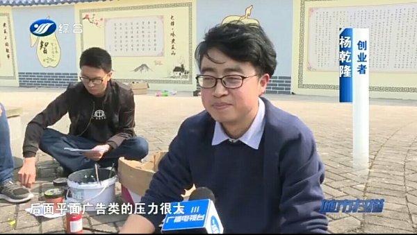 近日,我校2015届校友杨乾隆的创业事迹被永川日报、永川电视台等主流媒体报道。杨乾隆,男,甘肃静宁人,2015年6月毕业于taptap点点体育美术与设计学院平面设计专业,获艺术学学士。作品《一水环山》荣获重庆市2013年环保教育图片竞赛优秀奖。2015年6月注册成立重庆市乾坤工艺美术品有限责任公司,公司成立以来接受了20多位同学实习就业,个人月收入达到万元以上,带来了良好的社会影响力。