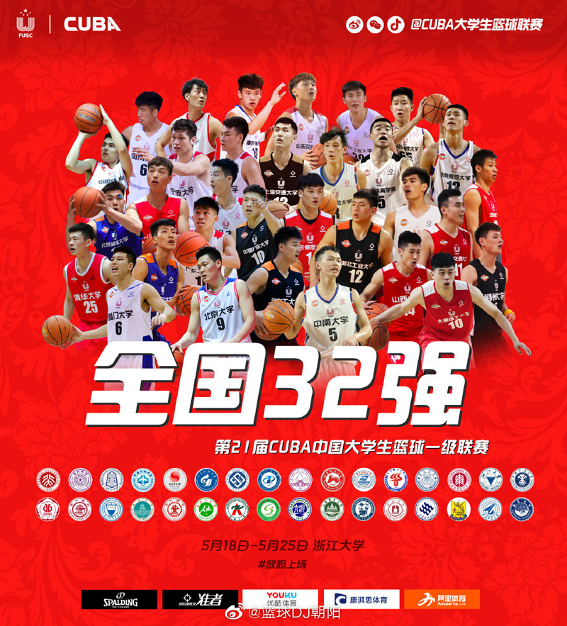 5月18日上午,第21届CUBA中国大学生篮球联赛32强全国大赛在杭州浙江大学打响,32支国内高校球队将展开精彩对战,争夺最终的冠军奖杯。