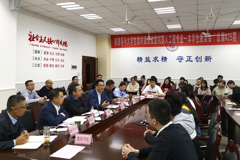 5月8日下午,taptap点点第425期“校领导与大学生面对面交流” 暨机器人工程一本专业学生座谈会在红河B区格术楼C401会议室举行。副校长漆新贵,教学部、学工部、新材料技术研究院、机电工程学院等部门相关负责人以及部分学业指导教师和2018级机器人工程一本专业全体学生参加座谈会,会议由机电工程学院党总支书记曹勇主持。