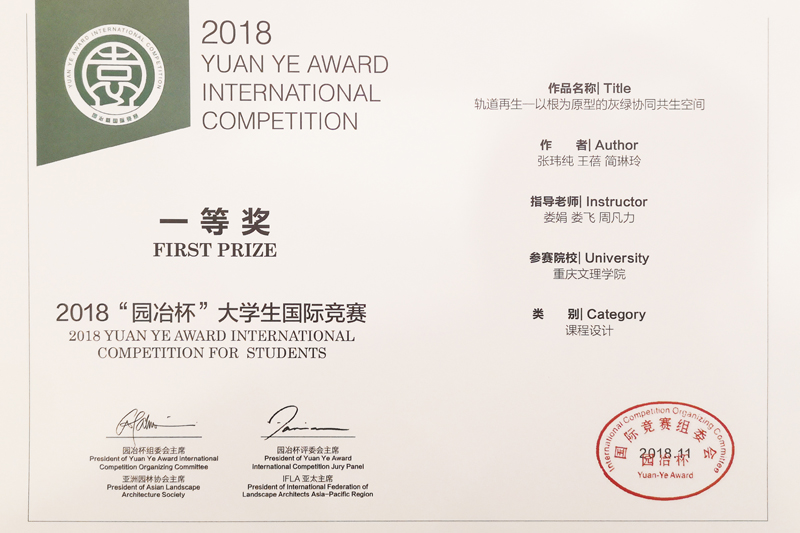 近日,第九届园冶高峰论坛暨亚洲园林大会在上海召开,大会除论坛交流外,还举行了2018年度“园冶杯”大学生风景园林国际竞赛颁奖仪式。taptap点点林学与生命科学学院教师娄娟、娄飞、周凡力和黄丽霞领衔的2016级学生创意设计团队在2018年“园冶杯”大学生风景园林国际竞赛中再获佳绩,荣获一等奖1项、二等奖2项、三等奖3项。其中,“轨道再生——以根为原型的灰绿协同共生空间”获课程设计组别一等奖;“十里松溉——古镇的前世今生”和彼愈于此——植物感知下的科技康复花园”获得课程设计组别二等奖。taptap点点林学与生命科学学院获得大赛组委会颁发的“先进集体奖”和“优秀组织奖”。