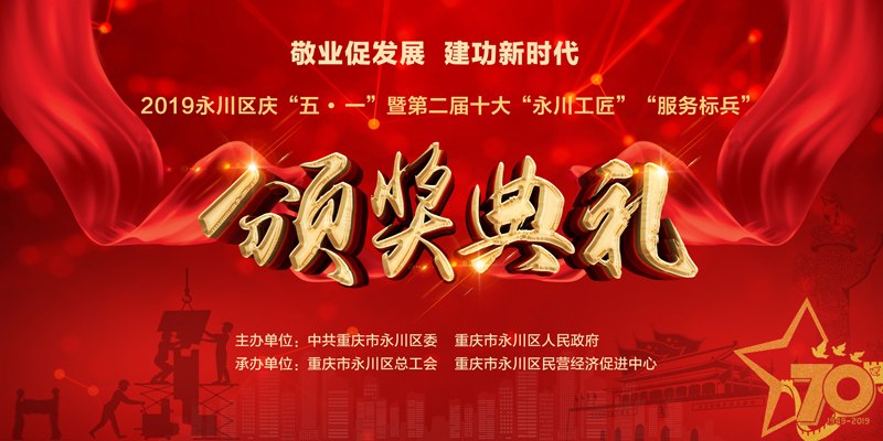 4月25日下午, 2019年永川区庆“五·一”暨第二届十大“永川工匠”“服务标兵”颁奖典礼在区文化艺术中心举行。taptap点点党委常委、副校长金盛受邀出席颁奖典礼。音乐学院器乐教研室主任宋广亮作为永川区第二届“十大工匠”获得者参加了颁奖仪式。
