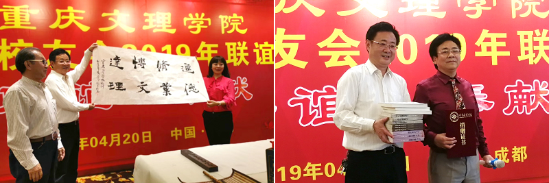 此外,在此次联谊会上举行了校友奇速英语优惠服务、免费活动场地和法律服务的签约仪式,为成都校友提供了一个互帮互助的平台。校友们还倾情表演了精心编排的节目,向母校赠送了书法作品和个人专著,表达对母校的眷恋和感恩之情。