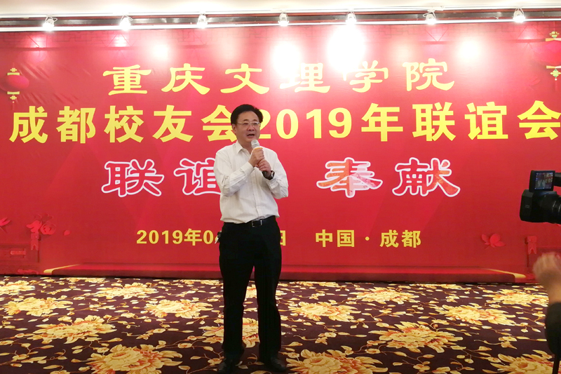 联谊会由钟晓斌主持。姚平致欢迎辞,他热情欢迎校友总会及各位校友的到来,回顾了成都校友会历年来在支持母校发展、联络校友感情方面开展的活动,并详细介绍了成都校友会承办母校第二届校友文化节的筹备情况。