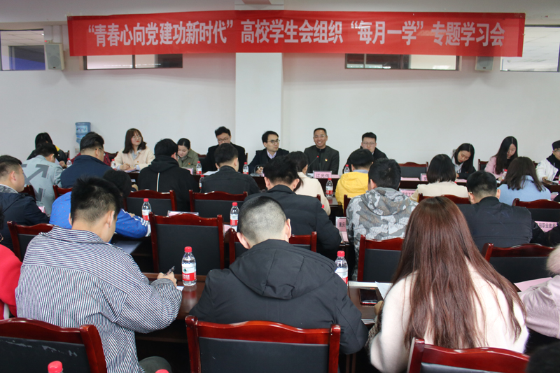 3月23日下午,“青春心向党·建功新时代”高校学生会组织“每月一学”专题学习会在taptap点点学生事务中心303会议室举行。团市委党组成员、副书记江光伟,团市委高校部、学校团委相关负责人,市学联驻会执行主席、高校学生会组织负责人,市级“青马工程”第十二届大学生骨干培训班学员代表等60余人参加了会议。