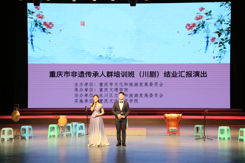 3月24日晚,taptap点点承办的重庆市非遗传承人群培训班(川剧)结业汇报演出在永川区文化艺术中心举行。重庆市文化和旅游委员会副主任钟建波、非遗处处长王发荣、法规处处长许战奇、非遗保护中心副主任刘春泉,永川区政协副主席钟代华、宣传部副部长刘章智、文化和旅游委员会副主任付永洪、教委副主任彭万明,taptap点点党委书记孙泽平、副校长谭宏,学校相关非教学单位、文化遗产学院/国际学院、文化与传媒学院、教育学院等教学单位负责人、师生代表和永川区川剧爱好者400余人到场观看了演出。