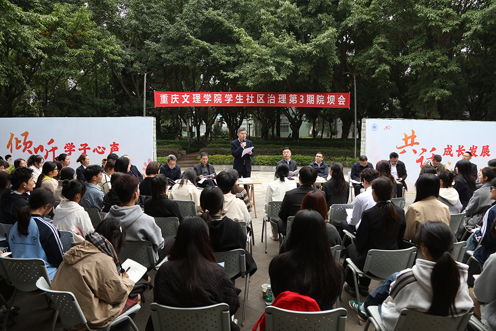 11月5日下午,学校学生社区治理第3期院坝会在红河A区菁华广场举行。学校党委书记蔡家林、副校长王东强出席会议,副校长陈中祝主持会议。