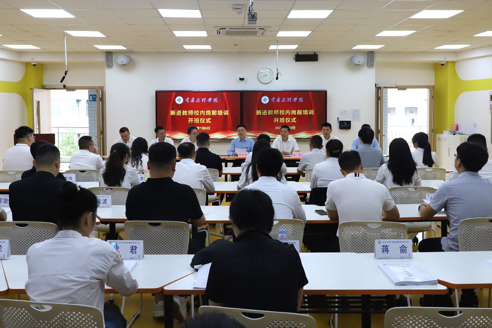 7月8日上午,2025年新进教师岗前培训开班仪式在知津楼D401教室举行。学校党委书记蔡家林出席并讲话,副校长金盛主持开班仪式。