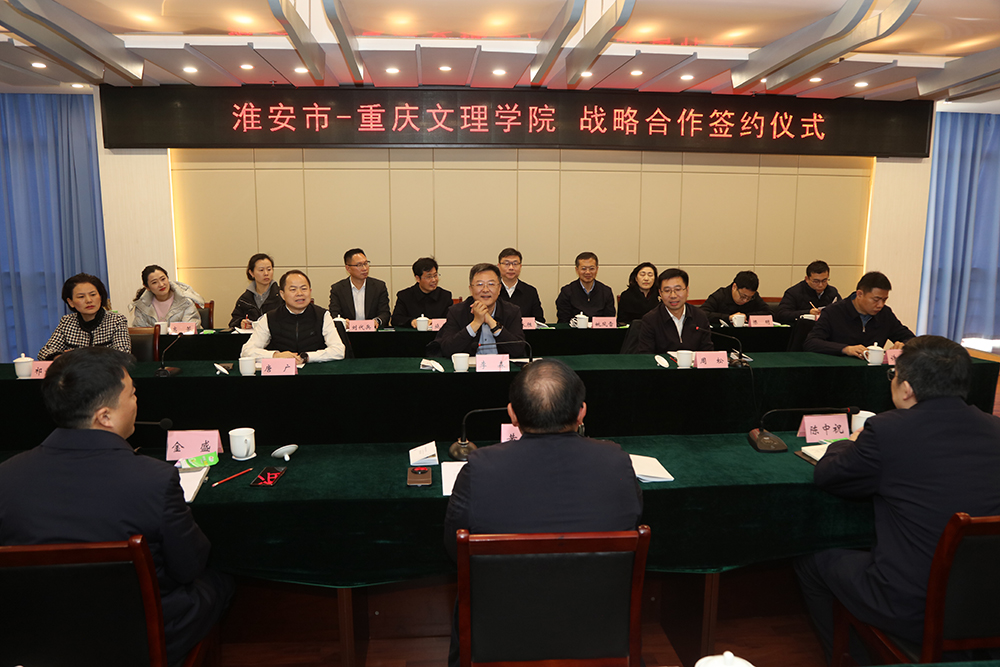 2月25日上午,淮安市委常委、宣传部部长李森,副市长周松带队来taptap点点推进渝淮合作项目,双方在恪勤楼422会议室举行座谈会并签订系列合作协议。学校校长黄伟九,副校长金盛、陈中祝,淮安市政府副秘书长唐广出席签约仪式, 金盛主持签约仪式。