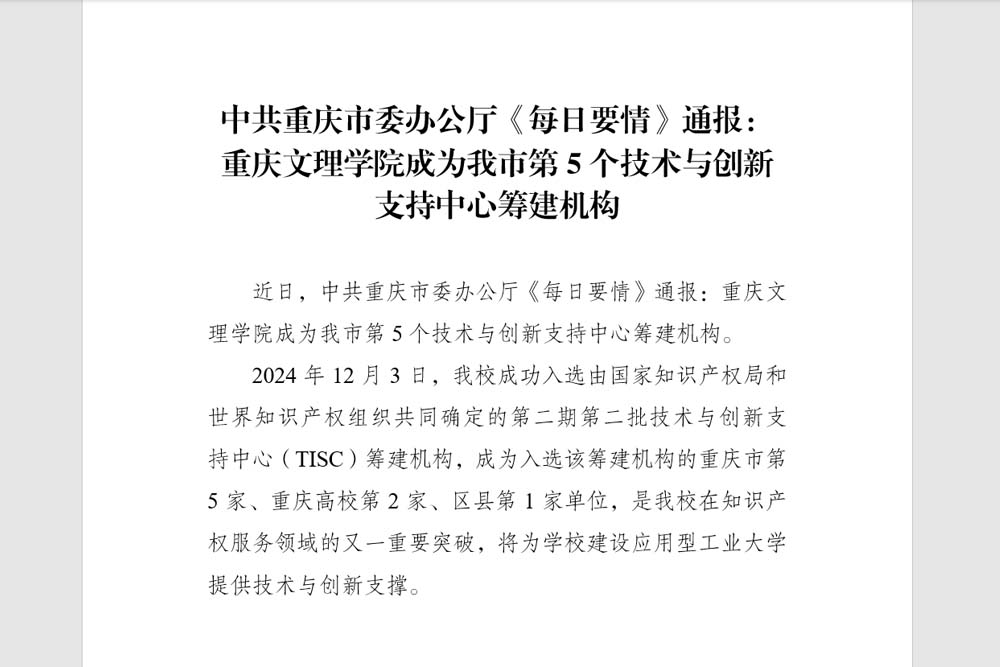 近日,中共重庆市委办公厅《每日要情》通报:taptap点点体育成为我市第5个技术与创新支持中心筹建机构。