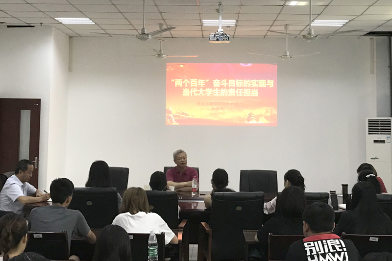 6月5日下午,学校党委书记孙泽平在格术楼C603为外国语学院党总支学生第一支部全体成员讲授了“‘两个百年’奋斗目标的实现与当代大学生的责任担当”主题党课。