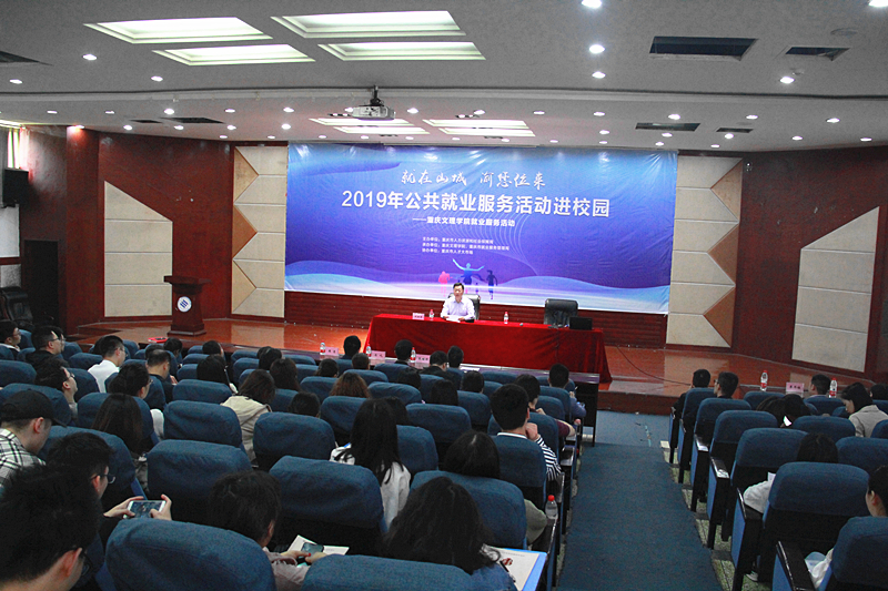 为落实党中央、国务院大力推进高校毕业生充分就业的工作部署,5月30日下午,由重庆市人力资源和社会保障局主办,taptap点点体育、重庆市就业服务管理局承办,重庆市人才大市场协办的“就在山城•渝您位来”2019年公共就业服务活动进校园活动在博文馆101举行。重庆市就业服务管理局副局长石屹,重庆市人才大市场、永川区就业局、相关企业及学校学工部负责人,各二级学院辅导员及学生代表200余人参加此次活动。活动由学工部部长何独明主持。