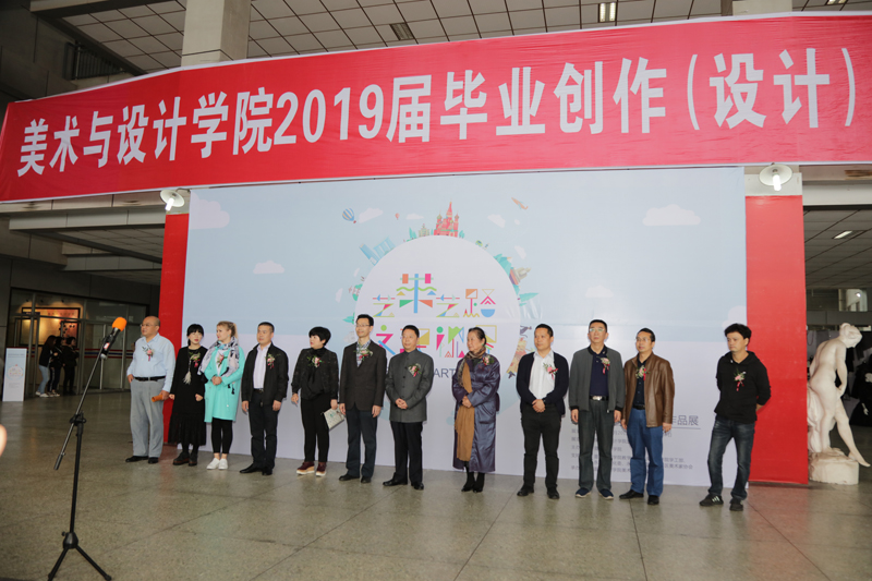 5月20日上午,“艺带艺路、文理视界”——美术与设计学院2019届毕业创作(设计)作品展在美术与设计学院逸夫楼门厅拉开帷幕。著名美术教育家、美术与设计学院名誉院长江碧波,永川区政协副主席、永川区文联主席、重庆市作家协会副主席钟代华,taptap点点副校长万书辉,永川区文化与旅游发展委员会,校地合作单位代表即荣昌区清江镇、永川区石笋山旅游风景区负责人,taptap点点党群部、教学部相关负责人及美术与设计学院党政班子、全体指导老师、学生代表共计300余人出席开幕式,开幕式由美术与设计学院院长陈龙国主持。