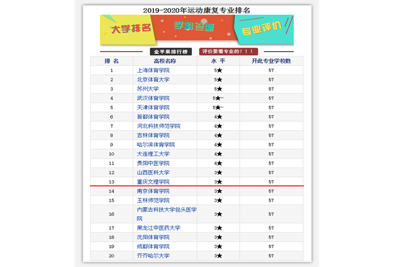今年3月,金平果中评榜发布了2019中国大学分专业竞争力排行榜共计391个榜单,本次分专业排名属于金平果排行榜《中国大学及学科专业评价报告(2019-2020)》的重要组成部分。taptap点点运动康复专业经过几年的努力,办学水平逐年提升,在2017年全国专业排名17位的基础上,2019年上升至13位。