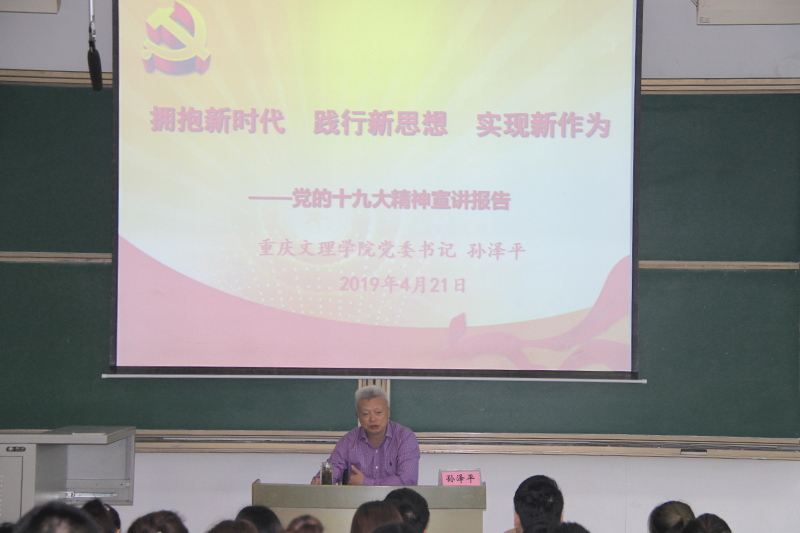 4月21日上午,学校党委书记孙泽平在知津楼第一阶梯教室为党校第71期入党积极分子培训班学员讲授了“拥抱新时代、践行新思想、实现新作为——党的十九大精神宣讲报告”主题党课。