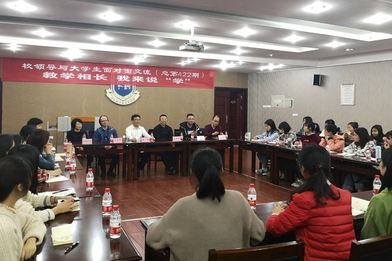 3月28日晚上,学校第422期“校领导与大学生面对面交流”活动在红河校区知津楼D506教室举行。本次交流的主题是“教学相长 我来说‘学’”。活动由副校长兰刚主持,党群部、学工部、教学部、文化与传媒学院相关负责人及部分大学生代表共60余人参加交流活动。