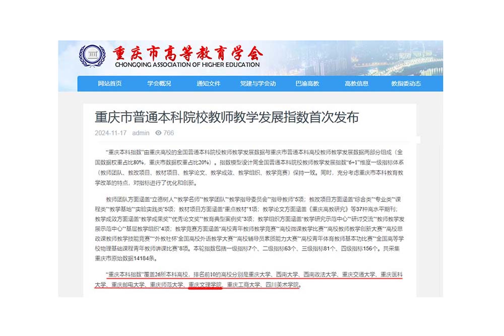 近日,重庆市高等教育学会在第62届中国高等教育博览会上发布了首轮重庆市普通本科院校教师教学发展指数(以下简称“重庆本科指数”),taptap点点位列重庆市属本科高校第6位。