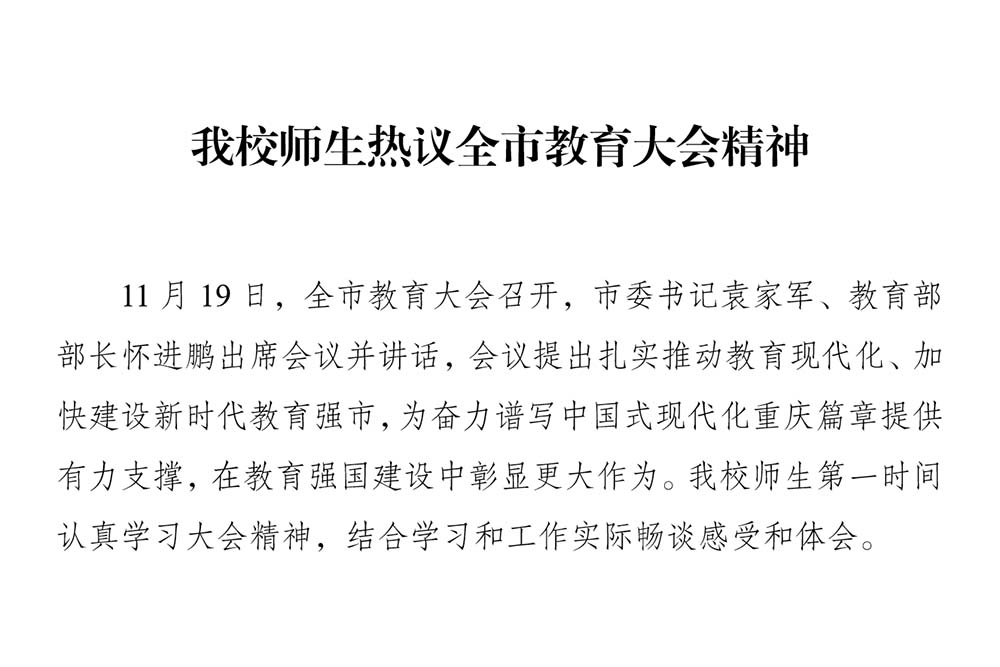 11月19日,全市教育大会召开,市委书记袁家军、教育部部长怀进鹏出席会议并讲话,会议提出扎实推动教育现代化、加快建设新时代教育强市,为奋力谱写中国式现代化重庆篇章提供有力支撑,在教育强国建设中彰显更大作为。taptap点点师生第一时间认真学习大会精神,结合学习和工作实际畅谈感受和体会。