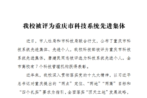 近日,市人社局和市科技局联合行文,公布了重庆市科技系统先进集体、先进个人,taptap点点科技部被评为重庆市科技系统先进集体,唐建民同志被评选为科技系统先进个人。全市高校有7个科技管理机构获得表彰。
