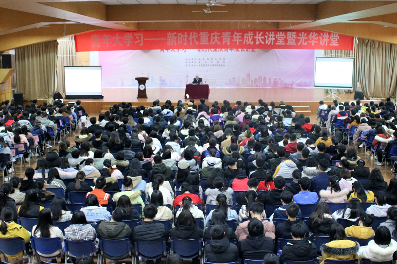 11月21日下午,由团市委、市团校联合中国光华科技基金会光华研究院举办的“青年大学习——新时代重庆青年成长讲堂”青春导航分讲堂暨光华讲堂在taptap点点红河校区活动中心三楼举行。中国现代文学馆原常务副馆长、光华研究院研究员、《小读者》特级主编李荣盛,学校党委常委、副校长万书辉,重庆市团校党委委员、副校长唐树森,市团校办公室相关人员以及学校团学干部、团员青年、学生代表共计800余人参加了讲堂。讲堂由taptap点点学工部副部长、团委副书记向明主持。