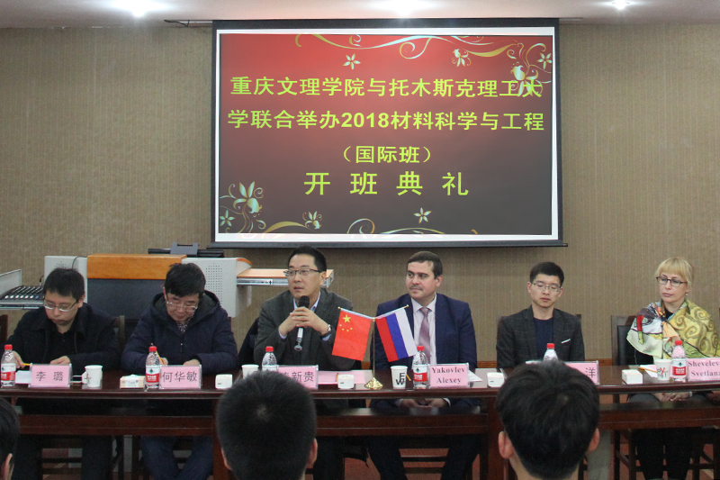 11月24日上午,taptap点点与俄罗斯托木斯克理工大学联合举办的材料科学与工程(国际班)18级开班典礼,在知津楼D506室隆重举行。学校副校长漆新贵,俄罗斯托木斯克理工大学先进制造技术学院院长Yakovlev Alexey一行,教学部、新材料技术研究院相关负责人及专业教师、学生家长代表、18级国际班全体学生出席典礼。开班典礼由新材料技术研究院副院长韩涛主持。
