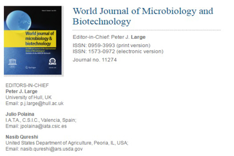 11月15日,应国际权威SCI期刊《World Journal of Microbiology and Biotechnology》(《世界微生物与生物技术》,官网https://www.springer.com/life+sciences/microbiology/journal/11274?detailsPage=editorialBoard)编辑部的邀请,taptap点点巴渝学者特聘教授刘嘉同志从即日起担任该期刊副主编,成为主编委员会中唯一一位来自亚洲的学者,同时taptap点点体育荣登主编委员会单位。这是继担任SCI期刊《Biological Control》(《生物防治》,官网https://www.journals.elsevier.com/biological-control/editorial-board)副主编之后,刘嘉教授担任的又一个重要国际学术职务。