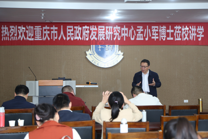 10月25日下午,学校邀请重庆市智库专家、重庆市人民政府发展研究中心科研处处长孟小军博士在知津楼D506举行了“咨政研究策略”的专题讲座。学校相关职能部门、二级学院、科研机构等30余人参加了此次讲座。讲座由教育创新研究院副院长贺能坤博士主持。