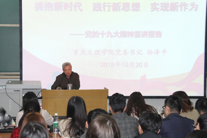 10月20日上午,学校党委书记孙泽平在知津楼第二阶梯教室为党校第70期入党积极分子培训班学员讲授了“拥抱新时代、践行新思想、实现新作为—党的十九大精神宣讲报告”主题党课。