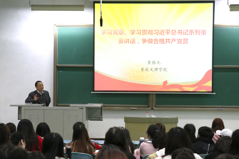 10月20日上午,学校党委副书记、校长黄伟九以《学习党章、学习贯彻习近平总书记系列重要讲话、争做合格共产党员》为主题,在红河校区知津楼一阶教室为党校第70期入党积极分子培训班全体学员讲授了专题党课。