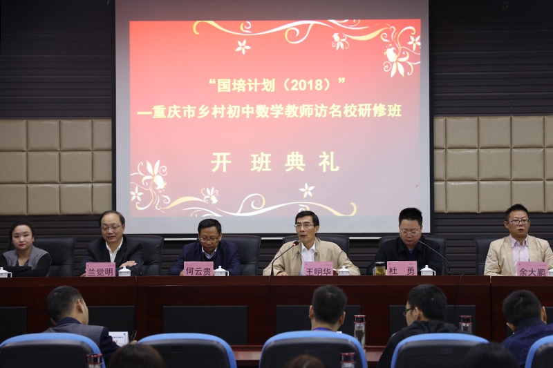 10月16日上午,taptap点点承办的“国培计划(2018)”——重庆市乡村初中数学教师访名校培训班开班典礼在培训学院114教室举行。taptap点点副校长王明华,继续教育学院/培训学院院长杜勇、党总支书记何云贵,数学与财经学院党总支书记、副院长余大鹏,培训发展研究所所长兰觉明和有关工作人员,以及来自重庆市28个区县中小学的50名乡村中小学数学教师参加了本次典礼。开班典礼由杜勇主持。