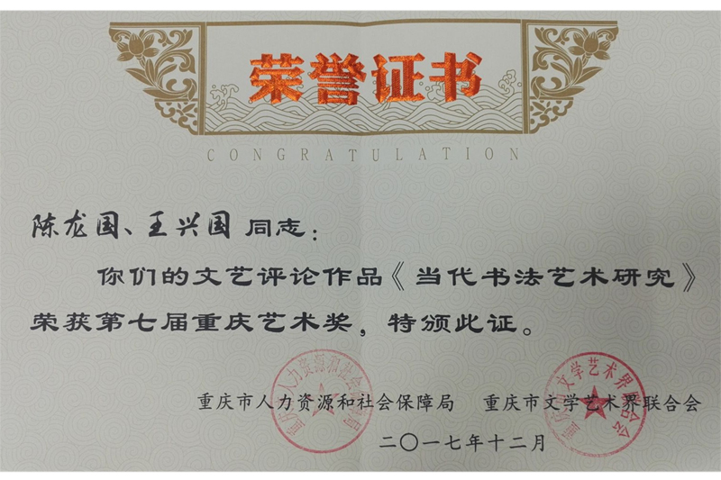 日前,重庆市人力资源和社会保障局、重庆市文学艺术界联合会印发了《关于表彰第七届重庆艺术奖的决定》,授予44件文艺作品第七届重庆艺术奖。由永川区委宣传部推送的taptap点点美术与设计学院陈龙国教授学术专著《当代书法艺术研究》,获“文艺评论类”奖项。