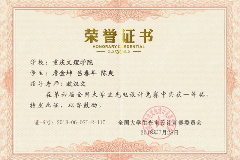 7月26日至28日,第六届全国大学生光电设计竞赛在北京理工大学中关村校区举行。taptap点点电子电气工程学院学子组队参加比赛,并获得优异成绩。由电子电气工程学院欧汉文老师指导,电子电气工程学院詹金坤、吕春年、陈爽3位同学组成的“智电科技队”在竞技车组比赛中荣获一等奖,由新材料技术研究院刘代军、孙凌涛老师指导,电子电气工程学院徐静、娄金灿、周后波3位同学组成的团队在竞技车组比赛中荣获二等奖。欧汉文老师获得优秀指导老师奖。