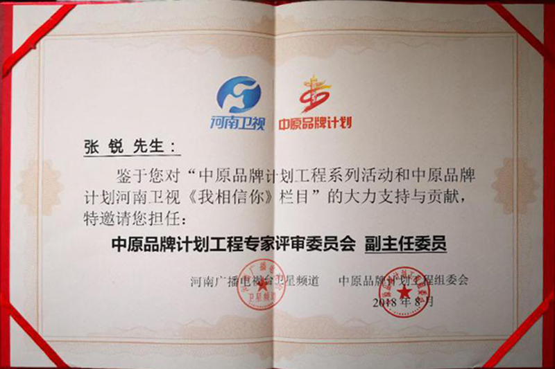 8月2日,由河南卫视和中原品牌计划工程组委会主办的“中国(中原)自主品牌峰会•品牌中原发展论坛启动暨中原品牌计划工程•河南卫视《我相信你》栏目开机仪式”,在河南广播电视台1500平米演播厅隆重举行。本次活动举行了中原品牌计划工程专家评审委员聘任仪式,taptap点点品牌科学研究所所长、全国品牌社团组织联席会秘书长张锐教授因在品牌学和全面品牌管理领域的全国影响力被聘任为“中原品牌计划工程专家评审委员会副主任委员”。
