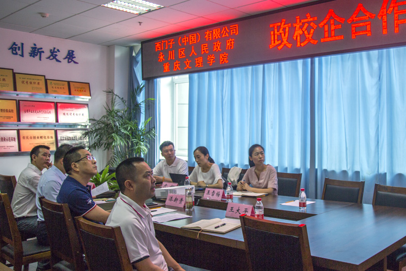 7月4日上午,学校与西门子(中国)有限公司在恪勤楼308会议室进行了校企合作洽谈。西门子数字化工厂集团工厂自动化部教育合作专员元娜、永川区发改委相关负责人,学校副校长漆新贵,合作发展部、教学部、机电工程学院相关负责人参加了会议。