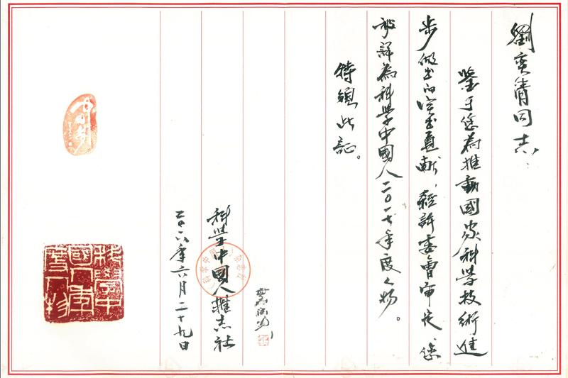 6月29日,由《科学中国人》杂志社主办的“与创新同行论坛暨科学中国人2017年度人物颁奖盛典”在北京钓鱼台国宾馆举行。本次活动共评出百余位“科学中国人(2017)年度人物”,taptap点点特色植物研究院院长/学科办主任刘奕清教授因在园艺学特色蔬菜生姜领域的突出贡献当选“科学中国人2017年度人物 ”。