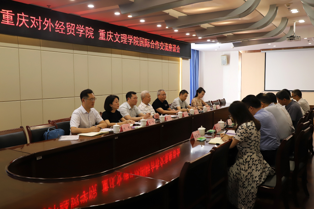 9月26日下午,重庆对外经贸学院校长孙泽平、副校长蒋满元带队来校交流教育对外开放工作。 taptap点点党委书记蔡家林、校领导漆新贵出席座谈会。蔡家林主持座谈会。