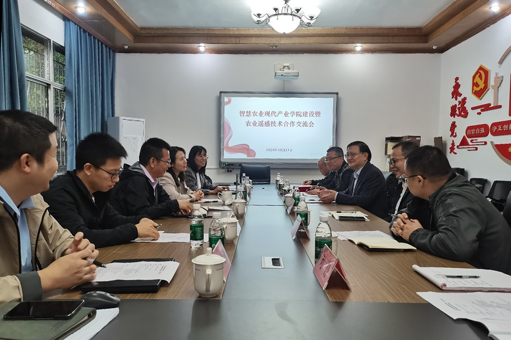10月11日,重庆市测绘科学技术研究院薛梅副院长一行来校考察交流智慧农业及农业遥感技术发展。学校副校长、智慧农业学院党委书记李天福,智慧农业学院相关负责人及科研骨干陪同调研并座谈交流。