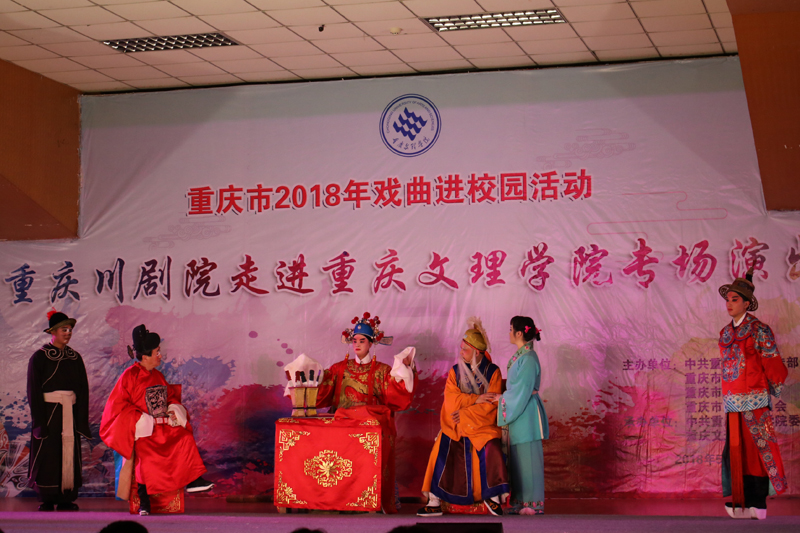 为弘扬中华传统文化,增强大学生的文化自信,5月28日晚,由中共重庆市委宣传部、重庆市教育委员会、重庆市财政局、重庆市文化委员会主办的“重庆市2018年戏曲进校园活动”——重庆川剧院走进taptap点点体育专场演出在taptap点点红河校区活动中心三楼举行。学校副校长万书辉,党群部、学工部相关负责人以及红河校区各二级学院师生代表共计800余人观看了演出。