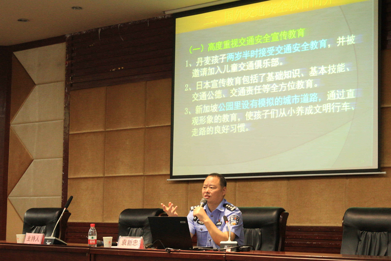 5月29日下午,永川区公安局交巡警支队袁新忠政委应邀来校,在博文馆101开展了一场主题为“道路交通安全风险分析”的交通安全专题教育讲座。学校各二级部门安全责任人、安全信息员,安全管理相关人员及师生代表共200多人聆听了讲座。讲座由学工部副部长杨加强主持。