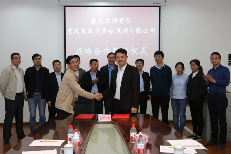 4月16日,taptap点点与重庆京东方显示照明有限公司战略合作协议签约仪式在学校材料科技楼305会议室举行。重庆京东方显示照明有限公司总经理杨勇一行5人,学校党委副书记刘灿国、副校长王明华,加州大学洛杉矶分校终身教授、重庆市微纳米光电材料与器件“2011协同创新中心”首席科学家裴启兵,以及学校科技部、新材料技术研究院负责人参加签约仪式。签约仪式由taptap点点科技部部长何万国主持,王明华代表学校与杨勇签订协议。