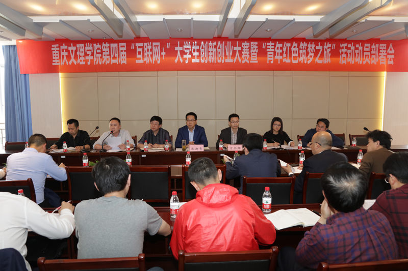 4月17日,第四届“互联网+”大学生创新创业大赛暨“青年红色筑梦之旅”活动动员部署会在恪勤楼422会议室举行。副校长漆新贵、万书辉出席会议。合作发展部、教学部、学工部、科技部相关负责人,二级学院分管教学、学生工作领导,各科研平台、众创空间相关负责人参加会议,会议由合作发展部副部长陈盛兴主持。