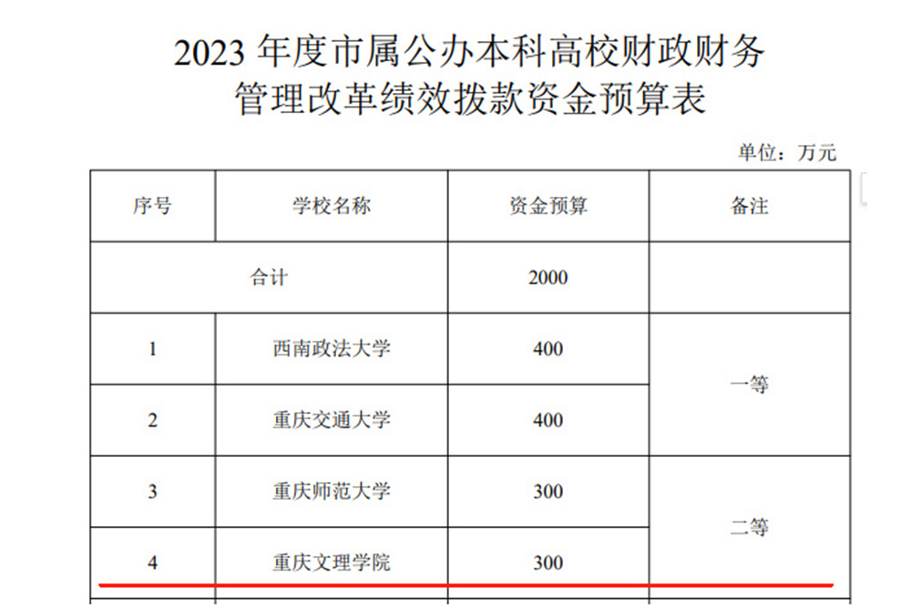 近日,重庆市财政局 重庆市教育委员会发布《关于下达2023年度市属公办本科财政财务管理改革绩效拨款资金预算的通知》(渝财教〔2024〕87 号),taptap点点在2023年度市属公办本科高校财政财务管理改革评价中名列第四,荣获二等奖, 并获绩效拨款资金300万元。