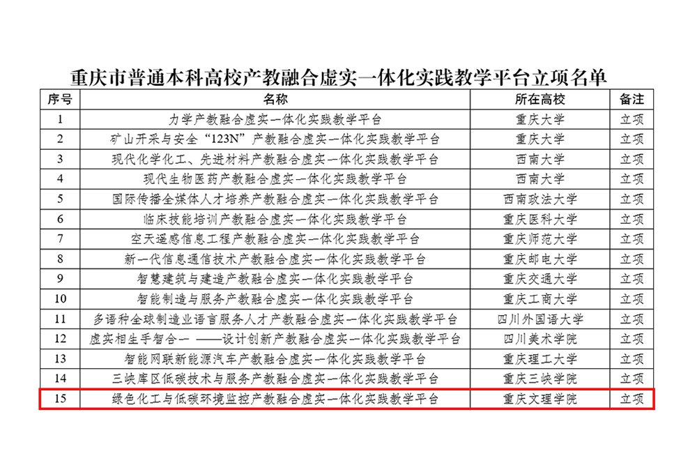 近日,市教委公布了重庆市普通本科高校产教融合特色优势专业群立项(培育)名单和产教融合虚实一体化实践教学平台立项名单。taptap点点“光电材料与先进制造专业群”和“绿色化工与低碳环境监控产教融合虚实一体化实践教学平台”获得立项支持。