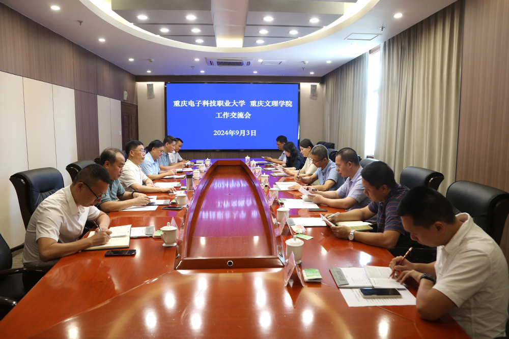9月3日下午,重庆电子科技职业大学党委书记张伟、副书记龚小勇带队来校考察交流。学校党委书记蔡家林、副校长李天福及党政办公室、教务处、科学技术处、基建后勤处负责人参加座谈交流。座谈会由蔡家林主持。