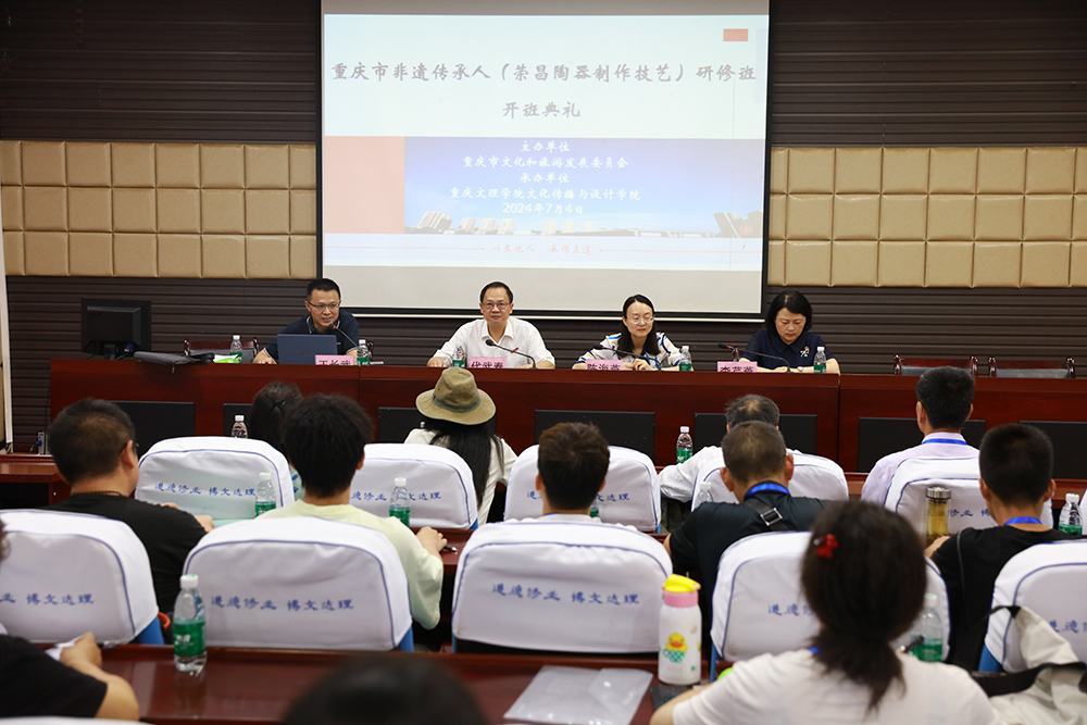 为进一步提高重庆市各级各类非遗传承人的传承能力,市文旅委按照文化和旅游部、教育部、人力资源和社会保障部《中国非遗传承人群研培计划》安排,委托taptap点点文化传播与设计学院举办重庆市非遗传承人(荣昌陶器制作技艺)研修班。7月4日,研修班开班典礼在taptap点点志仁楼114报告厅举行。重庆市文旅委非遗处副处长陈海燕出席典礼。