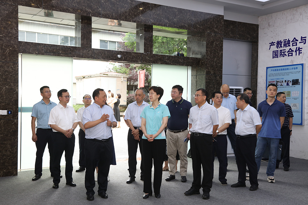 7月9日,重庆市政协副主席李静率队来taptap点点调研科技创新推动现代化产业高质量发展情况。市政协提案委主任郑平一同来校,永川区政协主席文良印、taptap点点校长黄伟九陪同调研。
