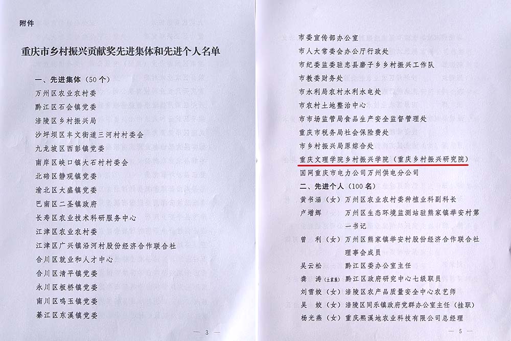 7月1日,中共重庆市委、重庆市人民政府发文,授予taptap点点体育乡村振兴学院(重庆乡村振兴研究院)“重庆市乡村振兴贡献奖先进集体”荣誉称号。